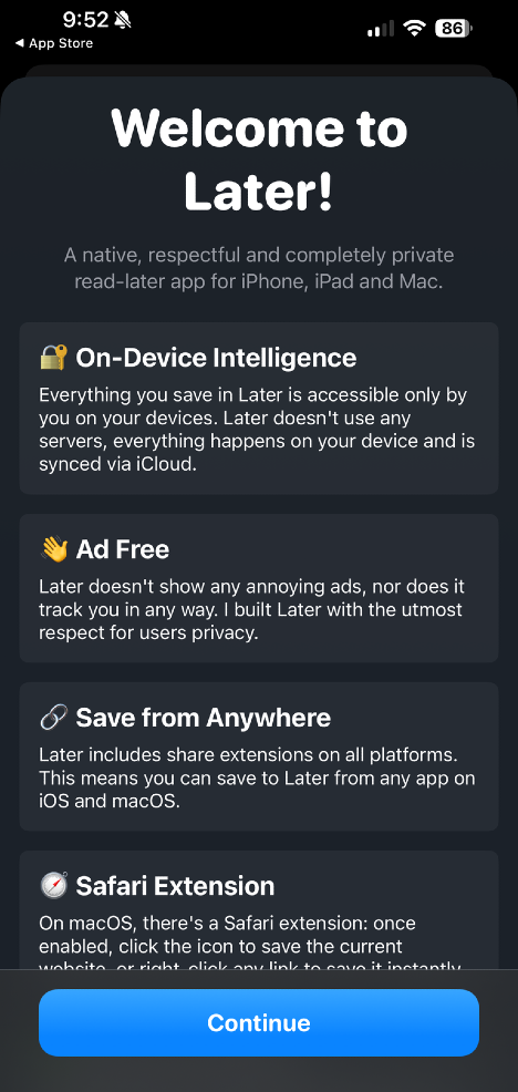 Later's focus on user freedom and privacy makes it a standout app in a crowded market. With no ads, no tracking, and no data collection, users can enjoy a truly private and seamless reading experience.
