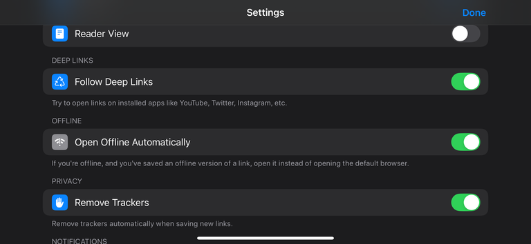 Later's ability to download webpages straight to your device is one of its best features. This makes it simple to save content while on the road by doing away with the requirement for intricate web scraping installations. Later has you covered whether you're offline or commuting. This feature (as simple as it may seem) is beyond awesome for me. I don't have to setup a docker server with multiple containers in order to read something later.