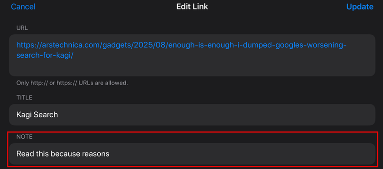 Ever save something and later wonder, Why did I keep this? With Later, you can save notes about why a link matters—maybe it’s a quote that stood out or a task tied to it. It’s like leaving a Post-it note as a reminder.